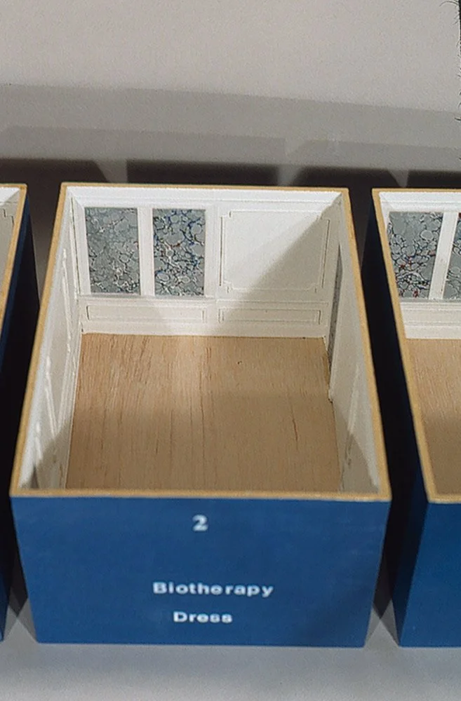 A 1/2 inch scale model of my living room, repeated 12 times, each box labeled with the volume number and what it's supposed contents are.